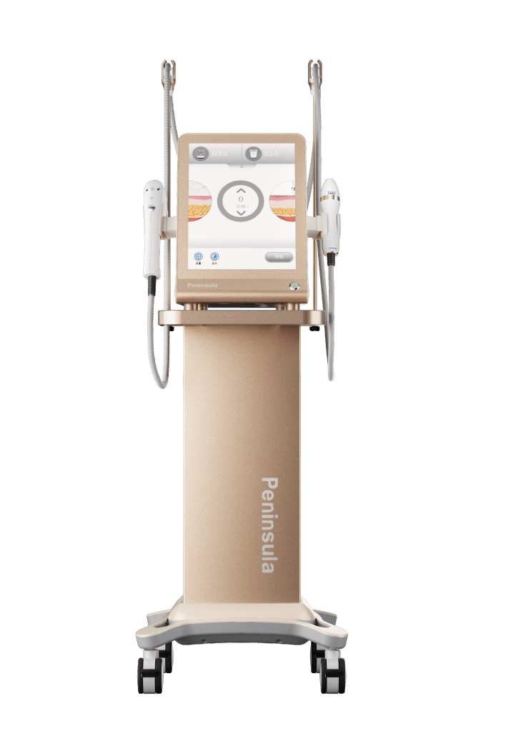 5 Behandlungsköpfe mit unterschiedlicher Tiefe für präzises Anti-Aging in den Schichten Dermis, oberflächliche Faszie und SMAS-Faszie.